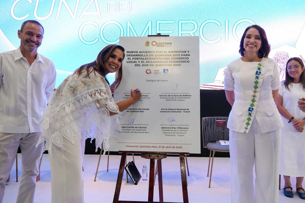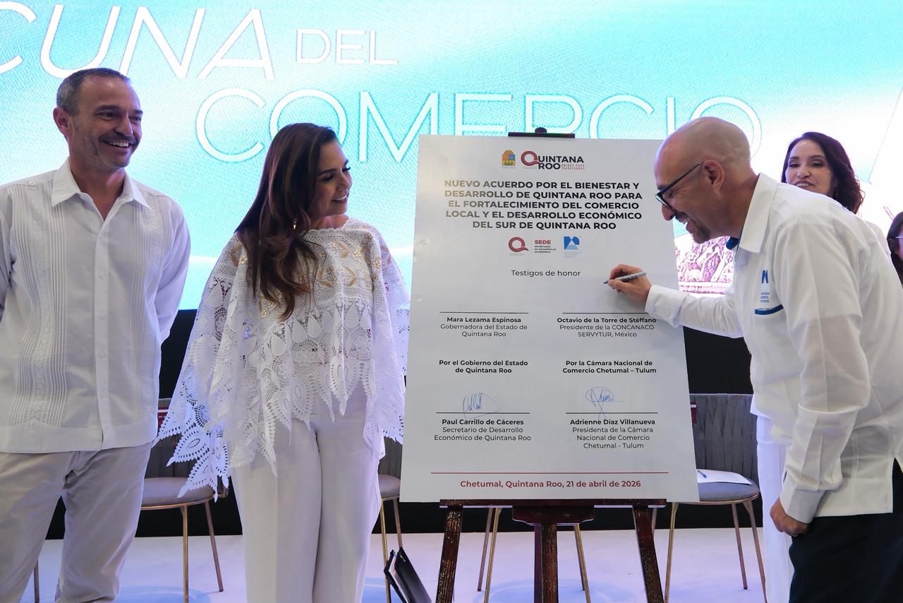 Durante la toma de protesta de la Mesa Directiva 2026 de la Canaco Chetumal Tulum sirvió de marco para la firma del Nuevo Acuerdo por el Bienestar y el Desarrollo de Quintana Roo para el Fortalecimiento del Comercio Local y el Desarrollo Económico del Sur.