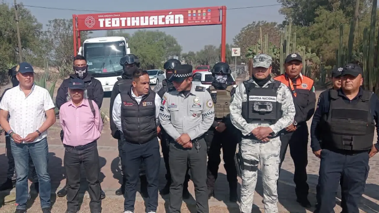 En el exterior participan además policías estatales y municipales de Teotihuacán, Acolman, Axapusco, Nopaltepec, Otumba, San Martín de las Pirámides y Temascalapa.