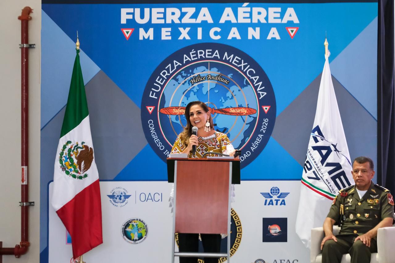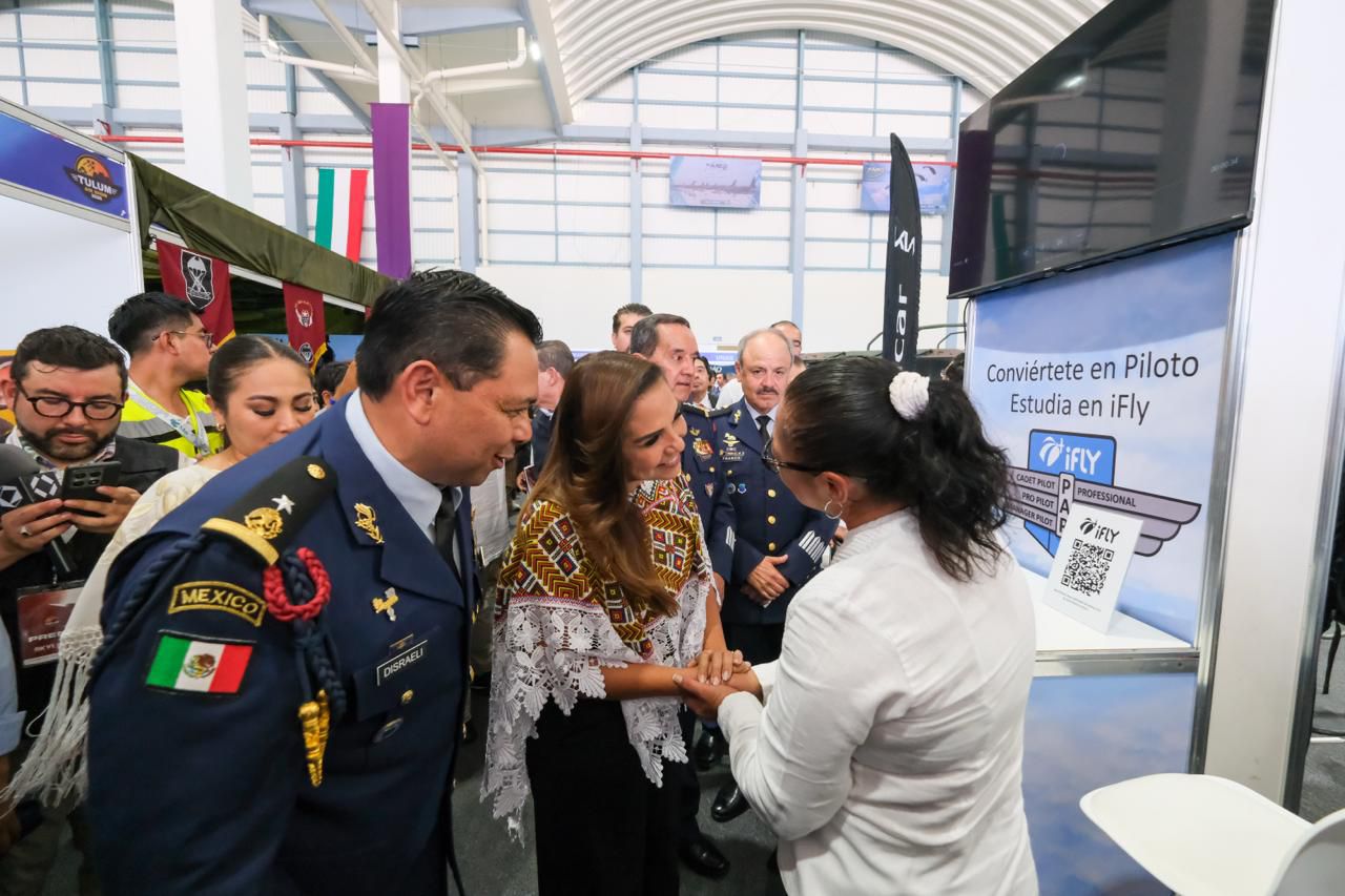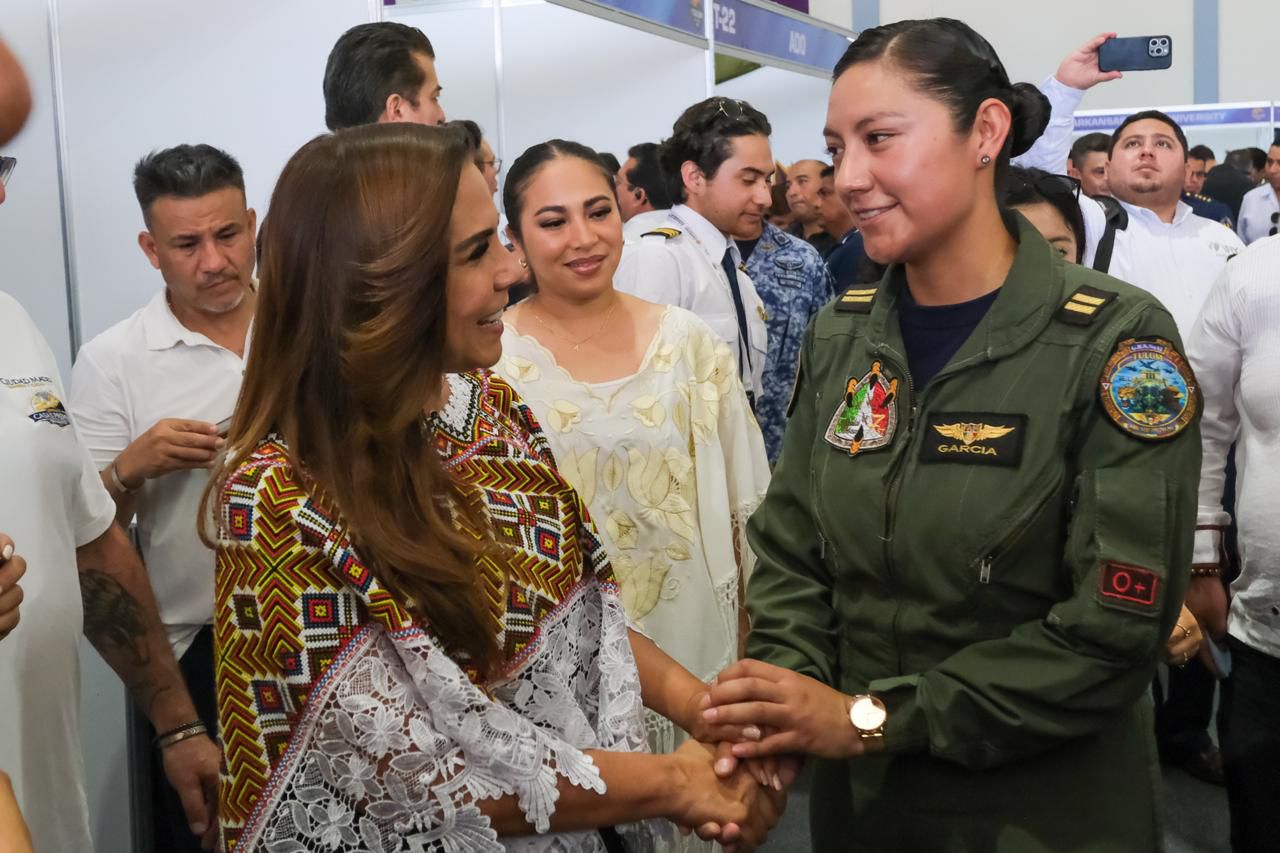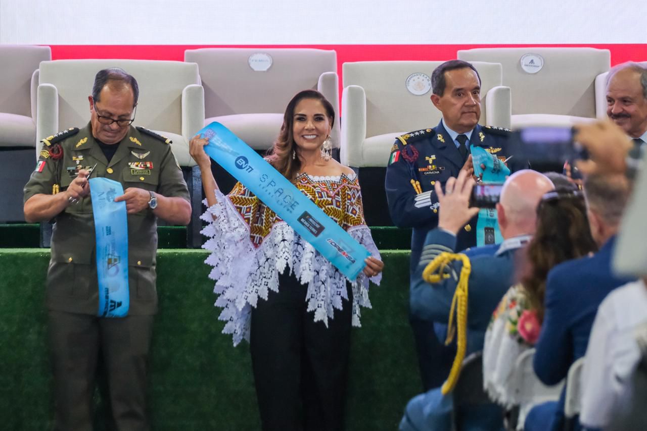 La gobernadora Mara Lezama Espinosa y el comandante de la Fuerza Aérea Mexicana (FAM), General de División PA de EM Román Carmona Landa, encabezaron la inauguración del “Tulum Air Show 2026”, un espectáculo sin precedentes que combina exhibiciones aéreas, encuentros de negocios e innovación tecnológica, desde el Aeropuerto Internacional “Felipe Carrillo Puerto” de Tulum.