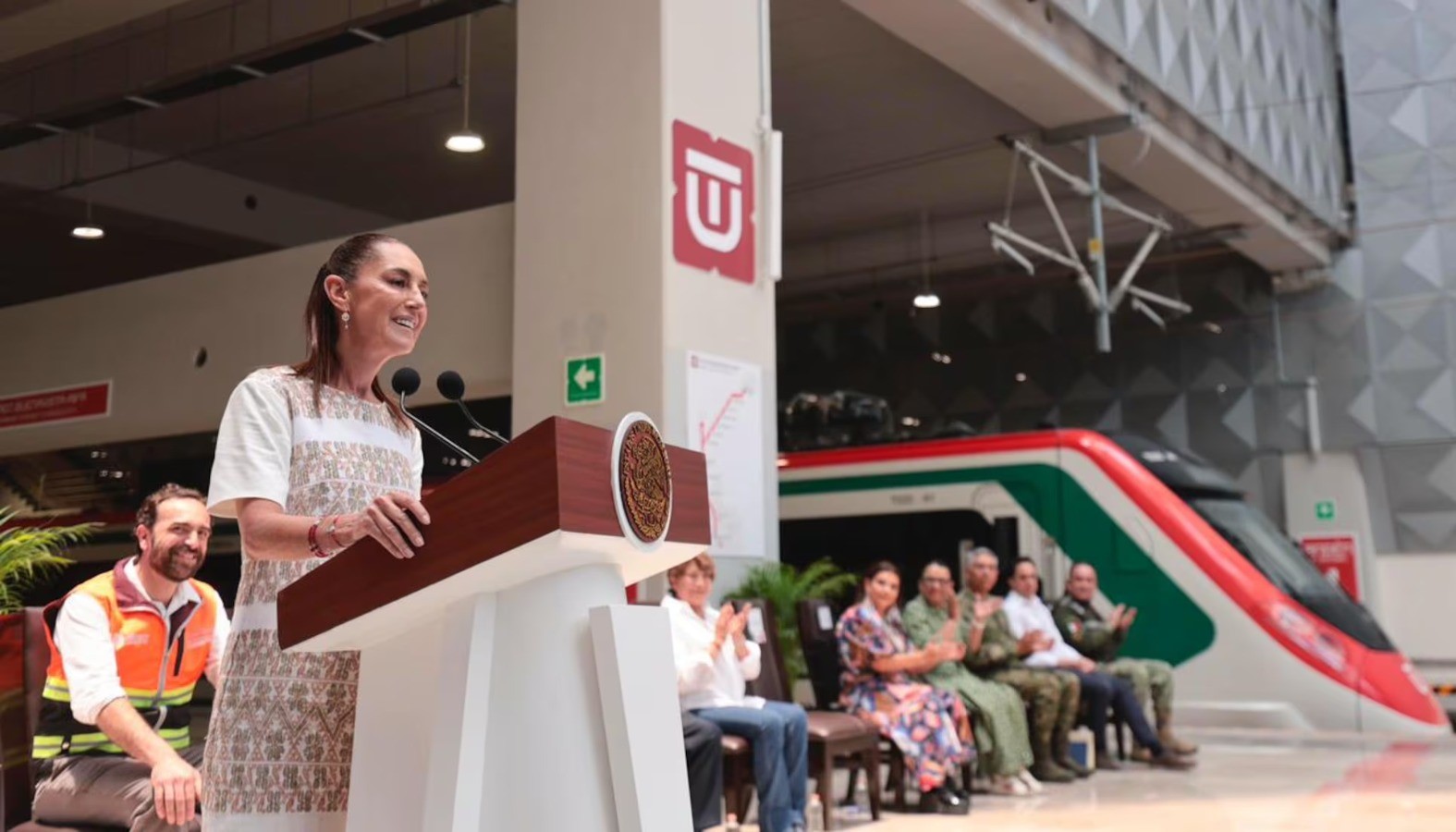 El primer viaje se reservó para la mandataria y su comitiva. A las 10:27 de la mañana el tren salió de Buenavista y arribó a AIFA-Clara Krause 50 minutos después (11:17).