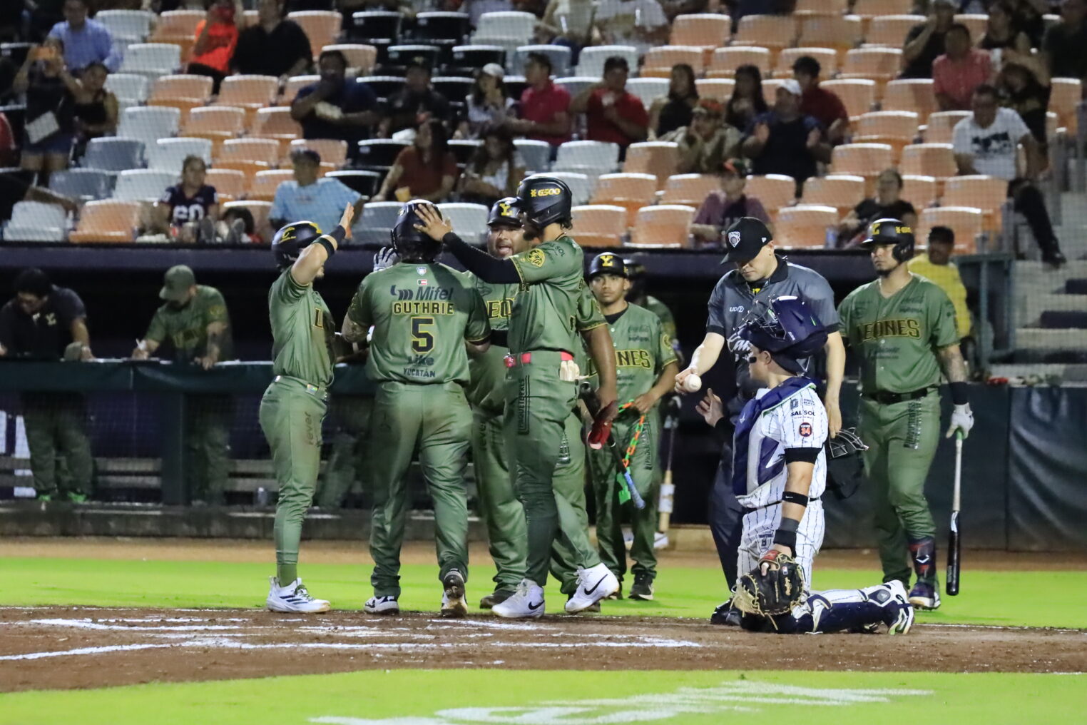 Pero los yucatecos de nuevo se pusieron adelante mediante un homerun de tres anotaciones, mismo que llegó en el sexto capítulo por conducto de Dalton Guthrie (1); mientras que su séptima rayita se dio en el octavo rollo.