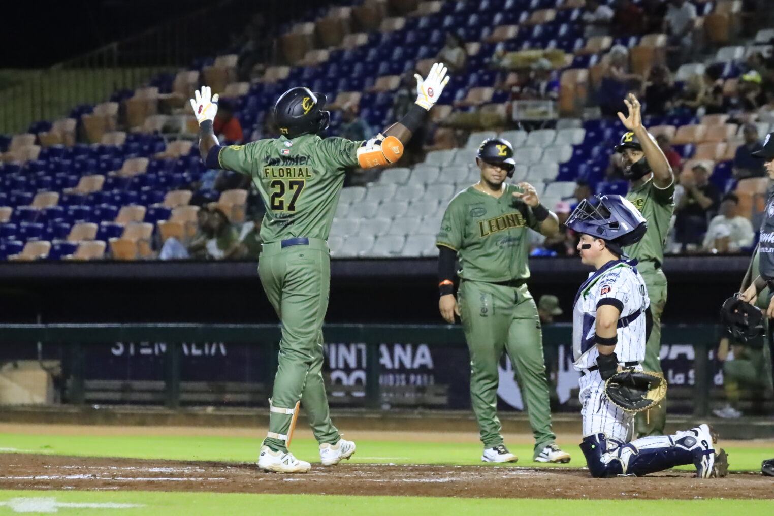 Así transcurrió el desafío, hasta que en la quinta entrada Yucatán le dio la vuelta al pizarrón con un rally de tres carreras, producto de un cuadrangular de Estevan Florial (1) por el bosque derecho, que se llevó por delante a Ronaldo Hernández y Wynton Bernard.