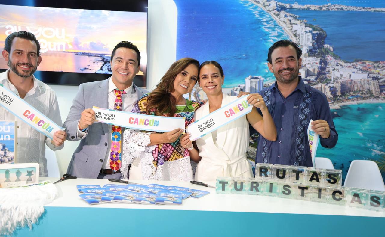 Antes de finalizar la jornada, Ana Paty Peralta encabezó la apertura oficial del espacio de promoción de Cancún dentro de ese stand y del Tianguis, lo que marca el inicio de las actividades comerciales, reuniones de negocios y acciones de posicionamiento del destino, líder en México y el mundo.